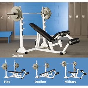 Category: Sports & Outdoors Vendor: New, improved design Easily adjusts between: Olympic Decline, Olympic Bench, Olympic Incline, and Olympic Military (-20, 0,